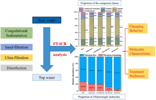 针对自来水厂水处理过程中有机污染物去除机制不清晰的科学问题,进行基于三维激发发射矩阵和傅立叶变换离子回旋共振质谱对全流程水处理过程中有机物的迁移转化行为的系列研究,从分子尺度揭示水处理过程中有机物去除的特异性,有助于优化各种原水的处理工艺,确保净水水质。相关研究成果正用于指导长沙自来水公司开展中试生产实验,对于保障以湘江等通江性水库为水源的居民饮用水安全具有重要意义,研究思路可为各个水处理工艺的机理探究提供参考(Chemosphere 330 (2023): 138731)。